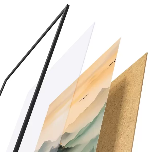 Il poster è composto da cornice, plexiglass, immagine stampata e supporto in truciolato. Il poster può essere immediatamente appeso alla parete grazie ai supporti sul retro.