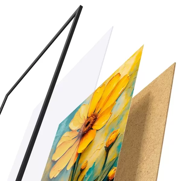 Il poster è composto da cornice, plexiglass, immagine stampata e supporto in truciolato. Il poster può essere immediatamente appeso alla parete grazie ai supporti sul retro.