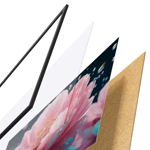 Il poster è composto da cornice, plexiglass, immagine stampata e supporto in truciolato. Il poster può essere immediatamente appeso alla parete grazie ai supporti sul retro.