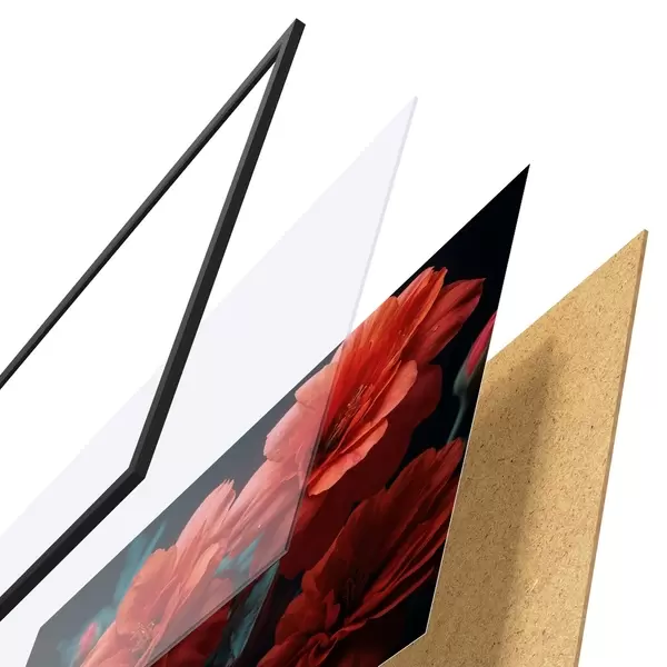 Il poster è composto da cornice, plexiglass, immagine stampata e supporto in truciolato. Il poster può essere immediatamente appeso alla parete grazie ai supporti sul retro.