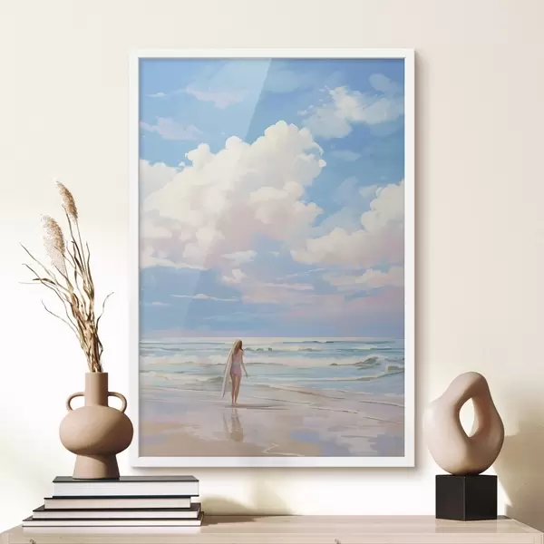 Poster Ragazza che fa surf nell'oceano, estate, onde, stile acrilico Nr f43882