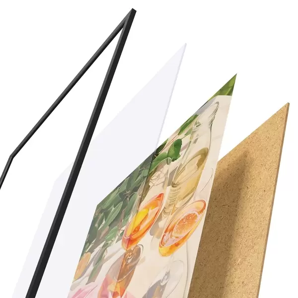Il poster è composto da cornice, plexiglass, immagine stampata e supporto in truciolato. Il poster può essere immediatamente appeso alla parete grazie ai supporti sul retro.