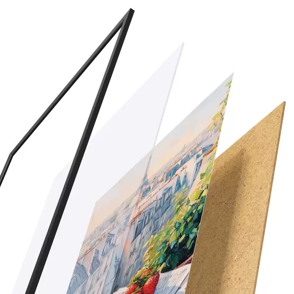 Il poster è composto da cornice, plexiglass, immagine stampata e supporto in truciolato. Il poster può essere immediatamente appeso alla parete grazie ai supporti sul retro.