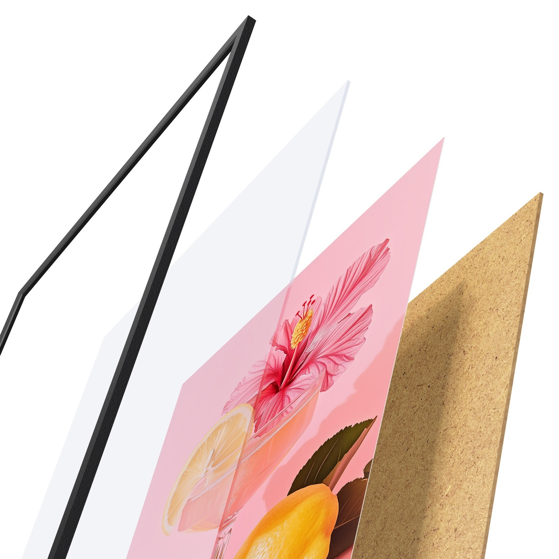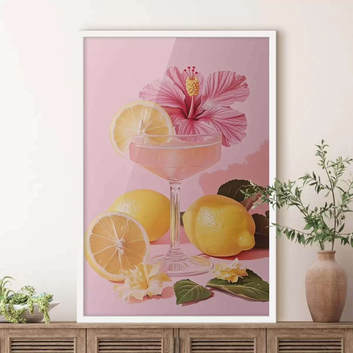 Poster Cocktail rosa con fiori di ibisco, limoni, realismo Nr f43893