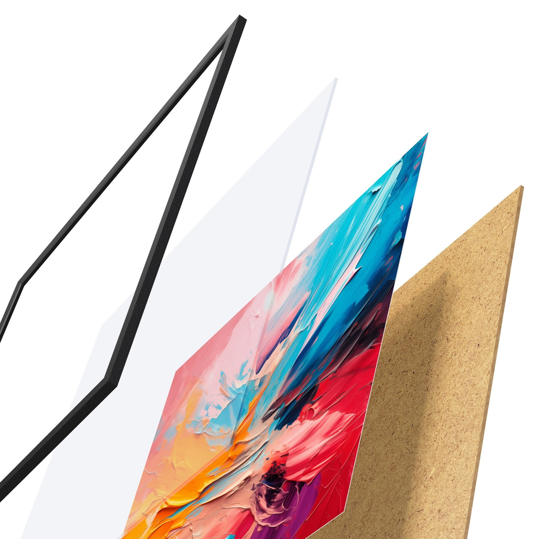 Il poster è composto da cornice, plexiglass, immagine stampata e supporto in truciolato. Il poster può essere immediatamente appeso alla parete grazie ai supporti sul retro.