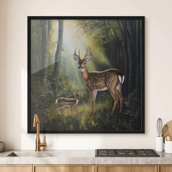 Poster Cervo e cerbiatto nella foresta Nr f43915