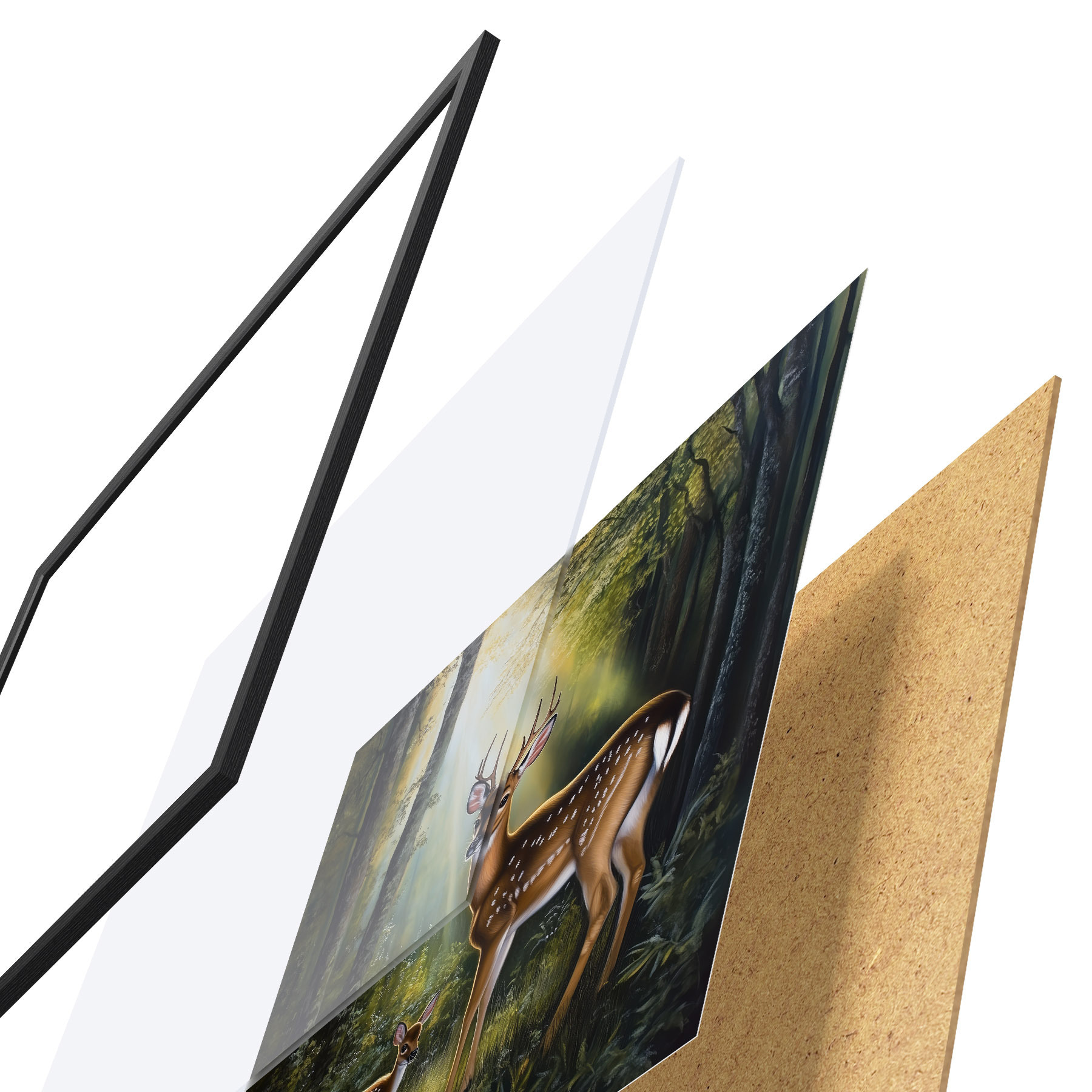Il poster è composto da cornice, plexiglass, immagine stampata e supporto in truciolato. Il poster può essere immediatamente appeso alla parete grazie ai supporti sul retro.