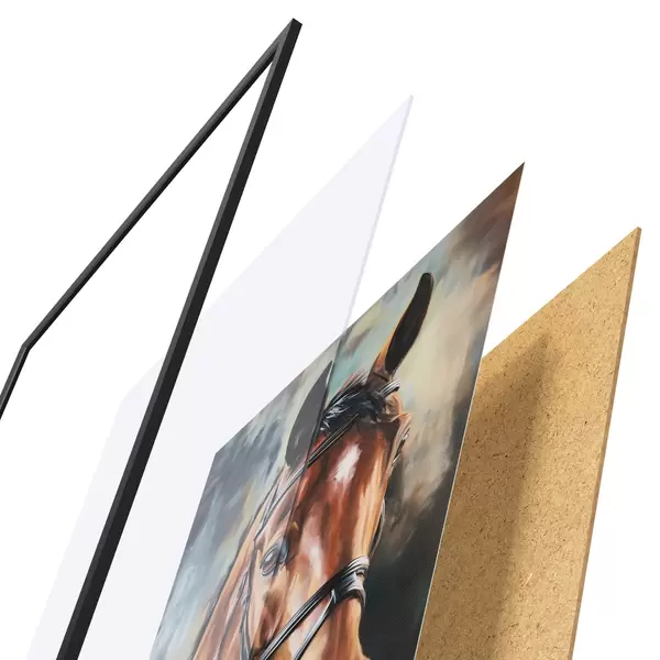 Il poster è composto da cornice, plexiglass, immagine stampata e supporto in truciolato. Il poster può essere immediatamente appeso alla parete grazie ai supporti sul retro.