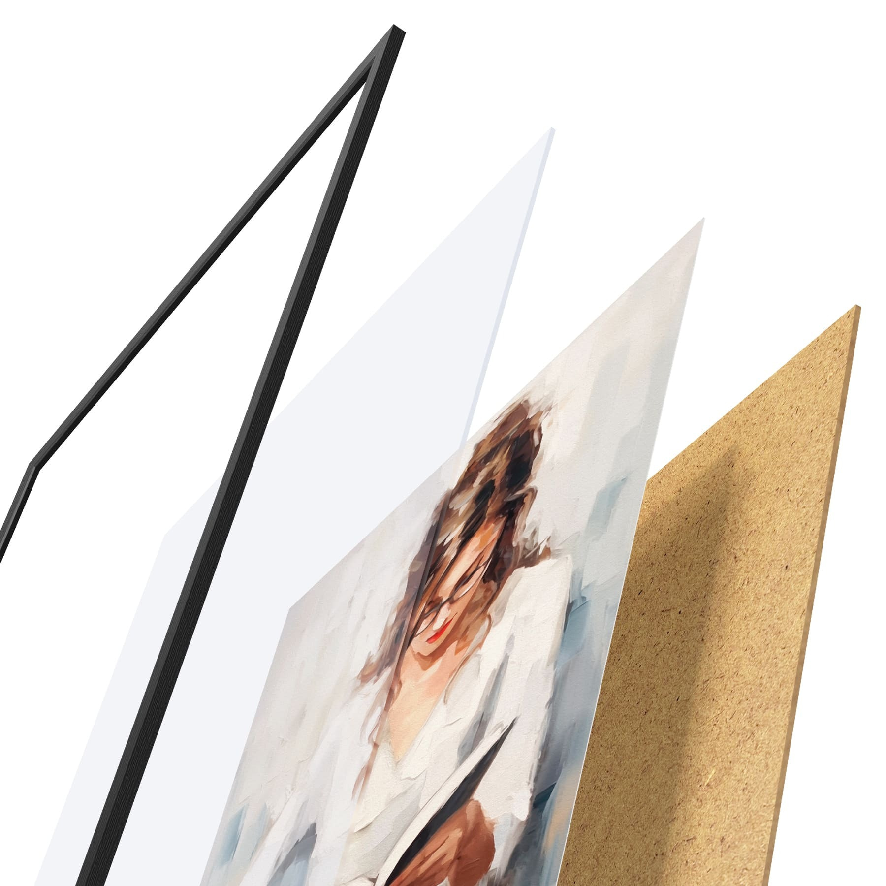 Il poster è composto da cornice, plexiglass, immagine stampata e supporto in truciolato. Il poster può essere immediatamente appeso alla parete grazie ai supporti sul retro.
