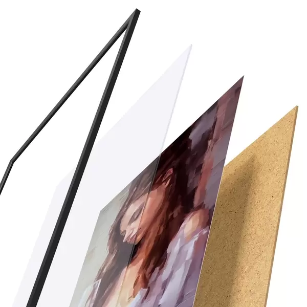 Il poster è composto da cornice, plexiglass, immagine stampata e supporto in truciolato. Il poster può essere immediatamente appeso alla parete grazie ai supporti sul retro.