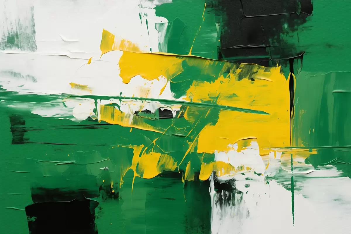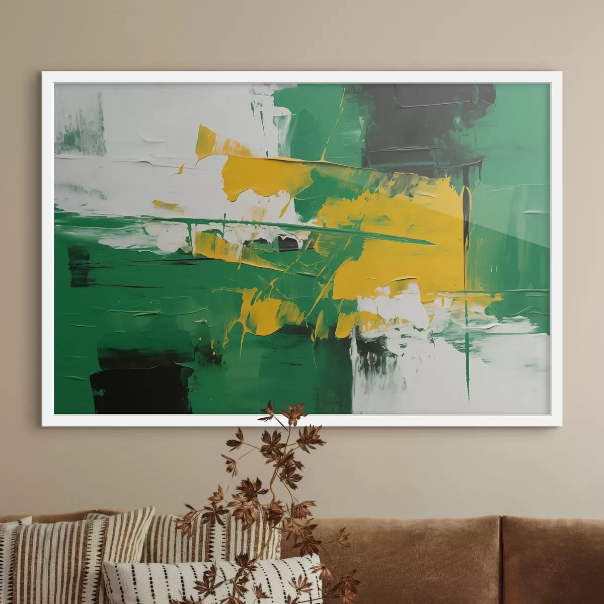 Poster Pittura ad olio astratta con colori bianchi, verdi e gialli in stile pittura ad olio f43944
