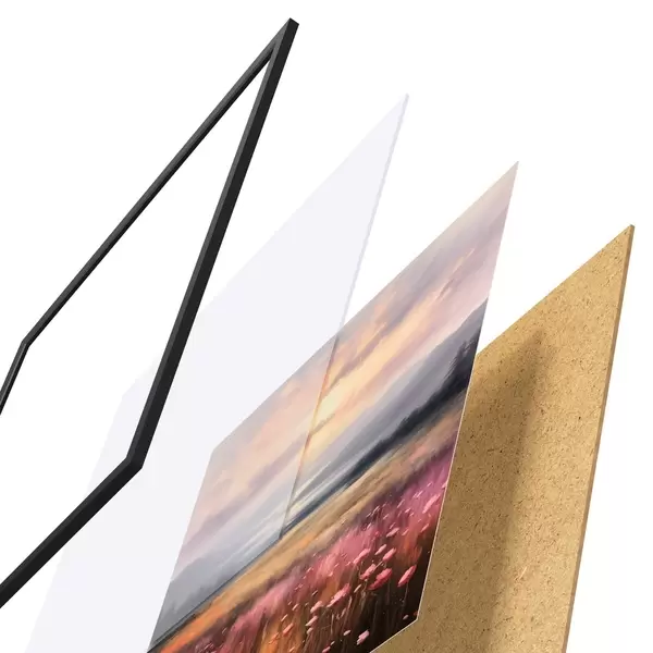 Il poster è composto da cornice, plexiglass, immagine stampata e supporto in truciolato. Il poster può essere immediatamente appeso alla parete grazie ai supporti sul retro.