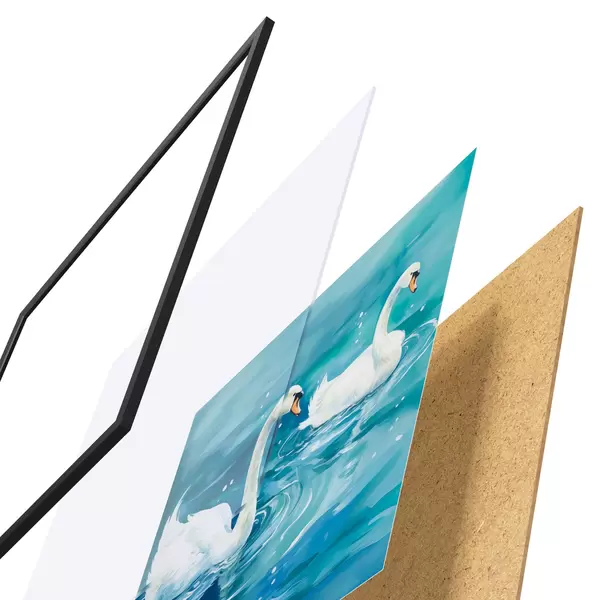 Il poster è composto da cornice, plexiglass, immagine stampata e supporto in truciolato. Il poster può essere immediatamente appeso alla parete grazie ai supporti sul retro.