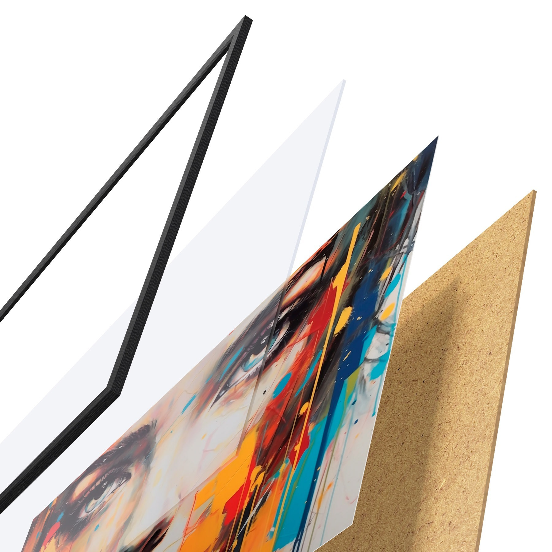 Il poster è composto da cornice, plexiglass, immagine stampata e supporto in truciolato. Il poster può essere immediatamente appeso alla parete grazie ai supporti sul retro.