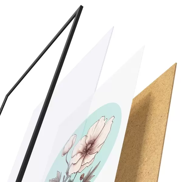 Il poster è composto da cornice, plexiglass, immagine stampata e supporto in truciolato. Il poster può essere immediatamente appeso alla parete grazie ai supporti sul retro.