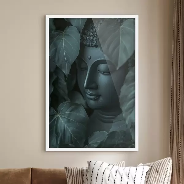 Poster Buddha tra le foglie verdi, buddismo, tropicale, realismo Nr f44004
