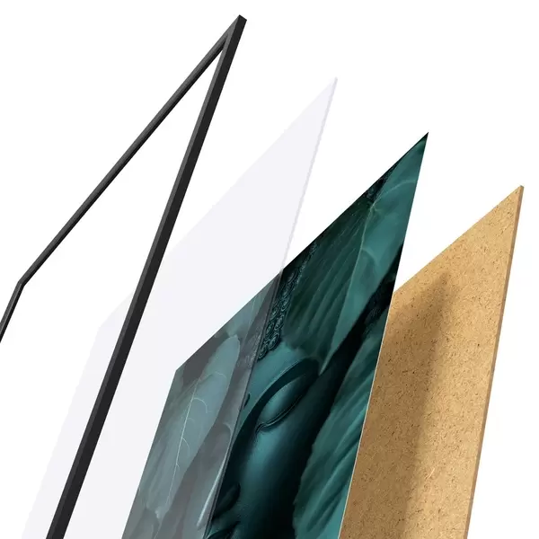 Il poster è composto da cornice, plexiglass, immagine stampata e supporto in truciolato. Il poster può essere immediatamente appeso alla parete grazie ai supporti sul retro.