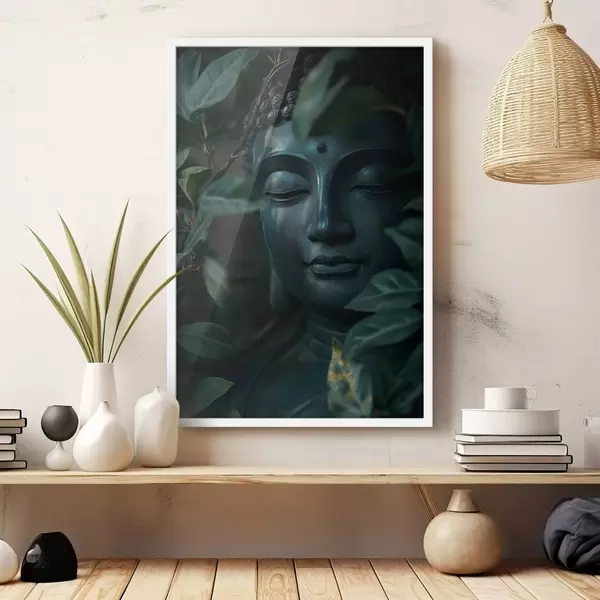 Poster Buddha verde con foglie tropicali, realismo Nr f44005