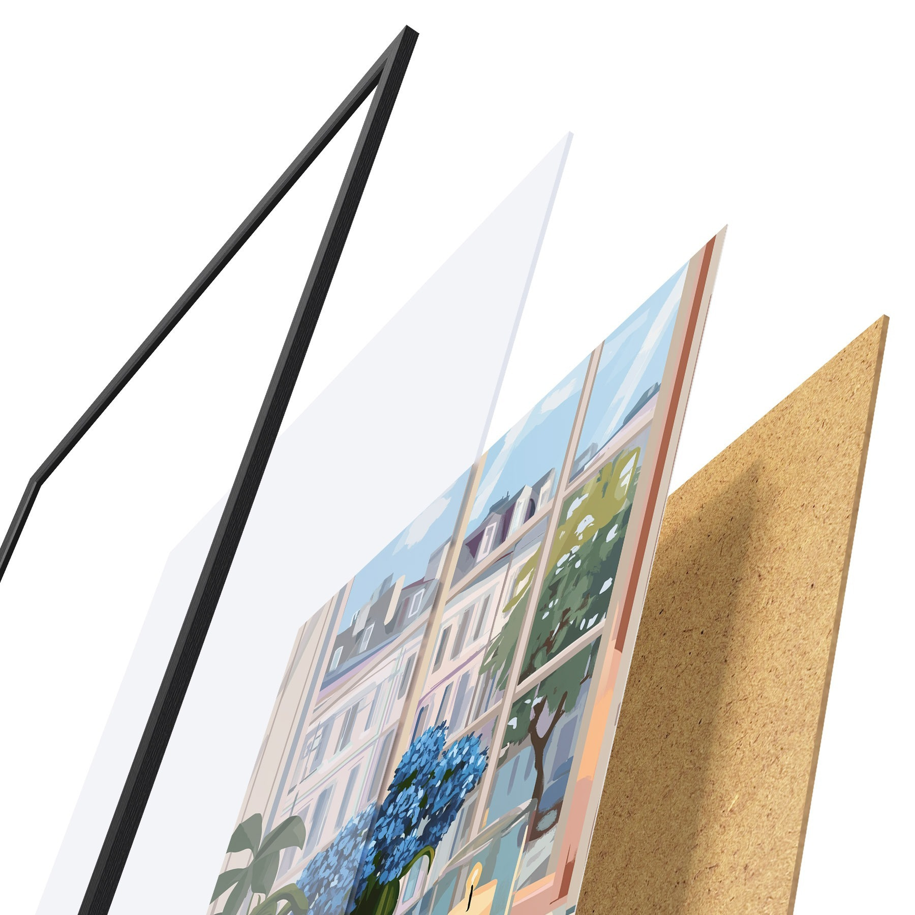 Il poster è composto da cornice, plexiglass, immagine stampata e supporto in truciolato. Il poster può essere immediatamente appeso alla parete grazie ai supporti sul retro.