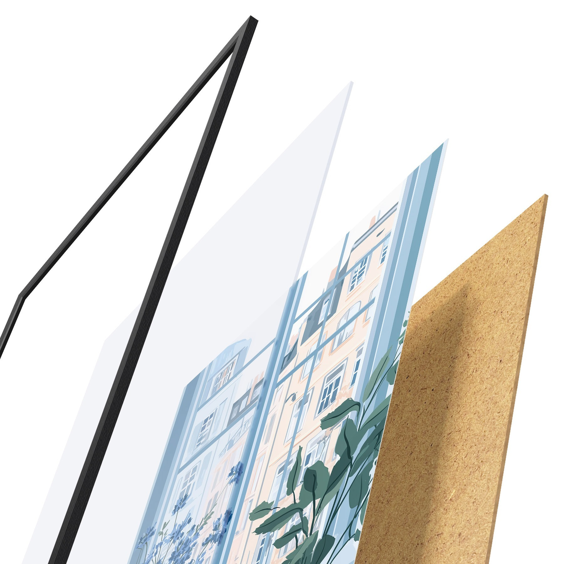 Il poster è composto da cornice, plexiglass, immagine stampata e supporto in truciolato. Il poster può essere immediatamente appeso alla parete grazie ai supporti sul retro.