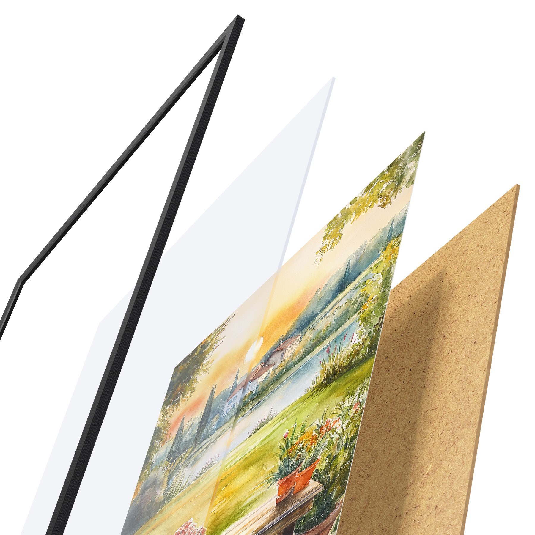 Il poster è composto da cornice, plexiglass, immagine stampata e supporto in truciolato. Il poster può essere immediatamente appeso alla parete grazie ai supporti sul retro.