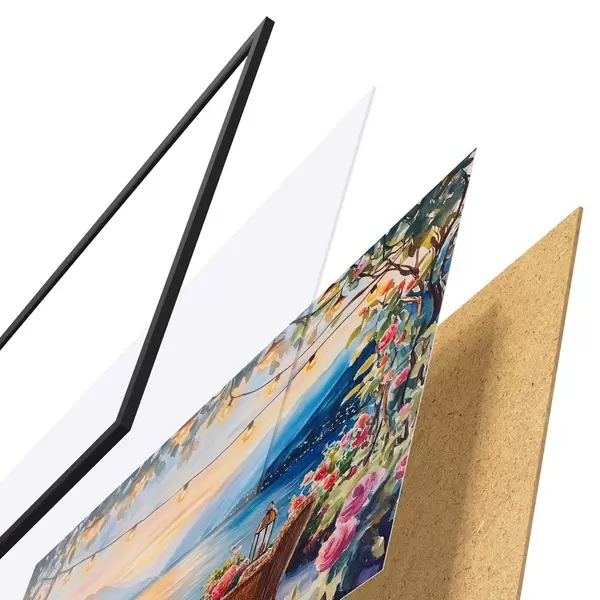 Il poster è composto da cornice, plexiglass, immagine stampata e supporto in truciolato. Il poster può essere immediatamente appeso alla parete grazie ai supporti sul retro.