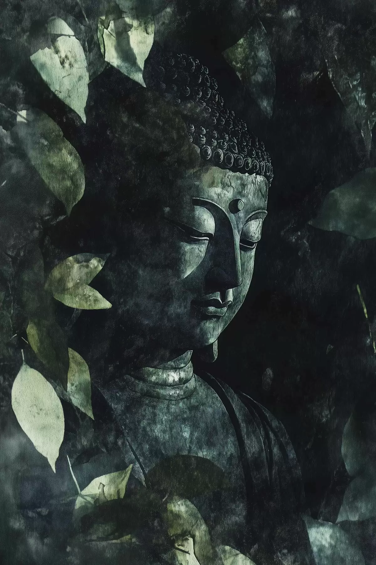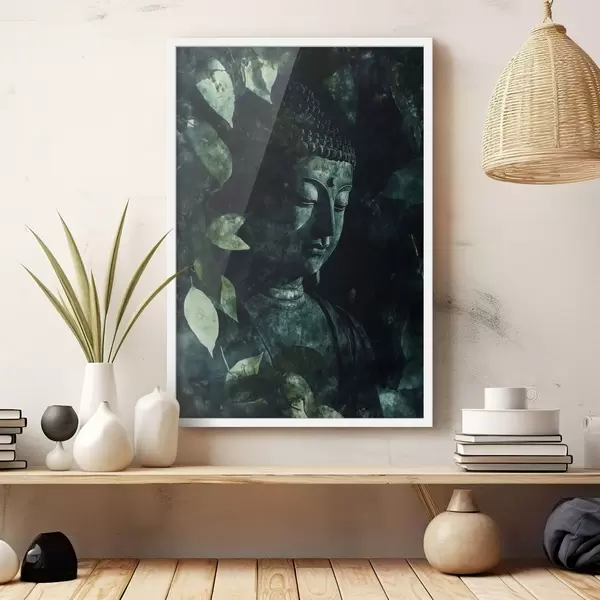 Poster Buddha meditativo tra le foglie verdi, spirituale Nr f44029