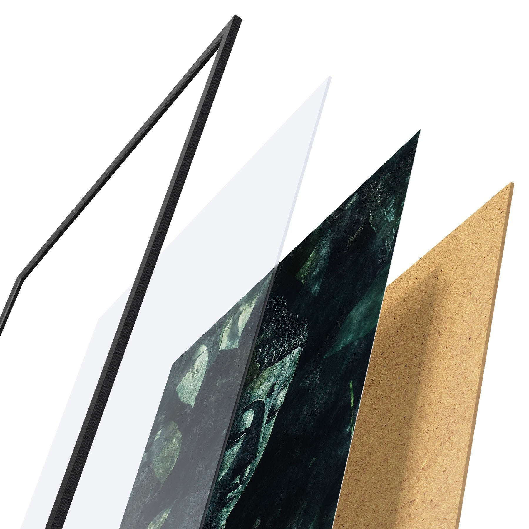 Il poster è composto da cornice, plexiglass, immagine stampata e supporto in truciolato. Il poster può essere immediatamente appeso alla parete grazie ai supporti sul retro.