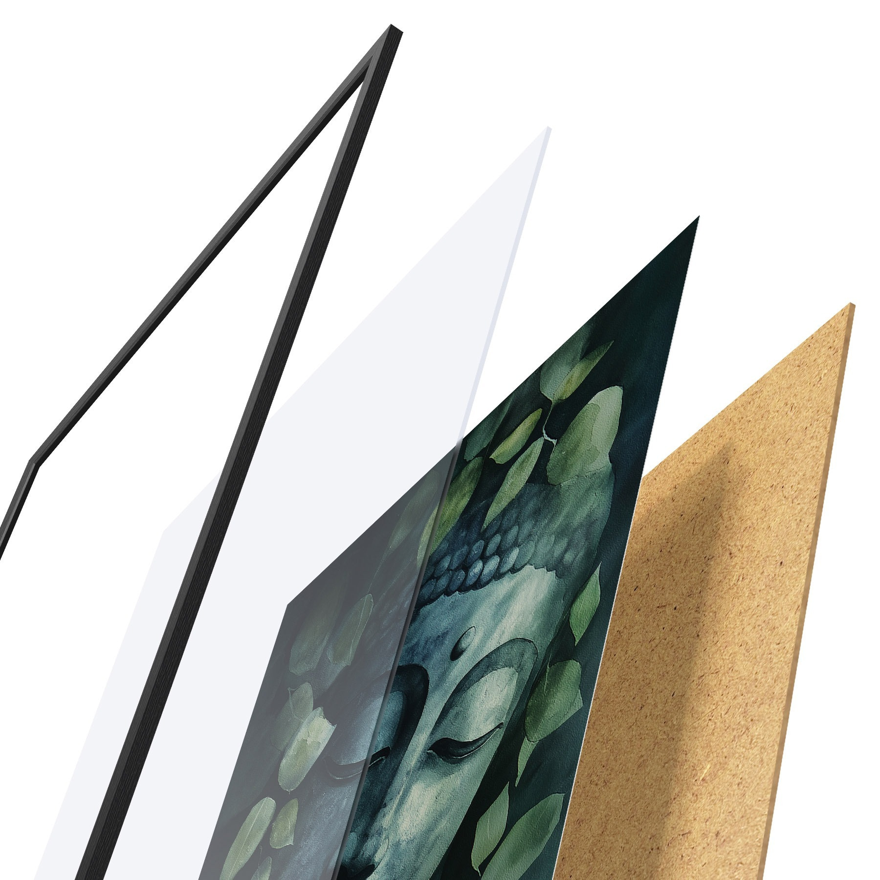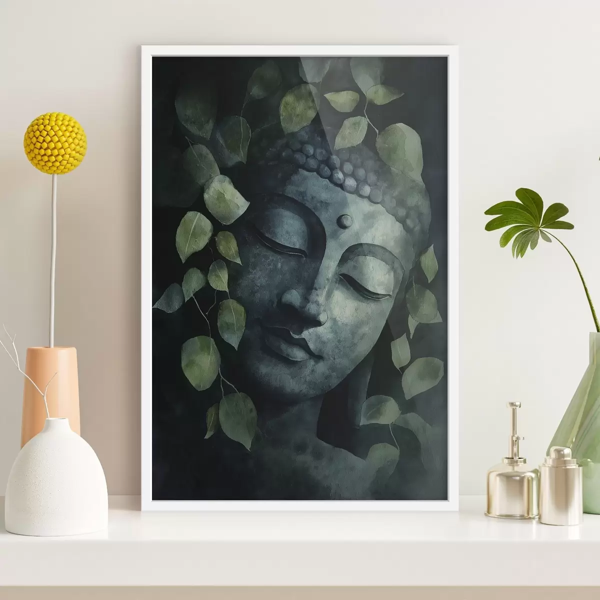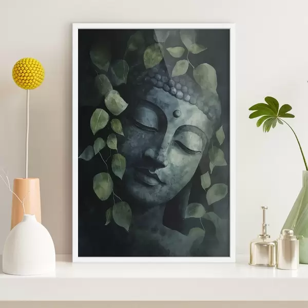 Poster Buddha con gli occhi chiusi, meditazione, colori verdi f44030