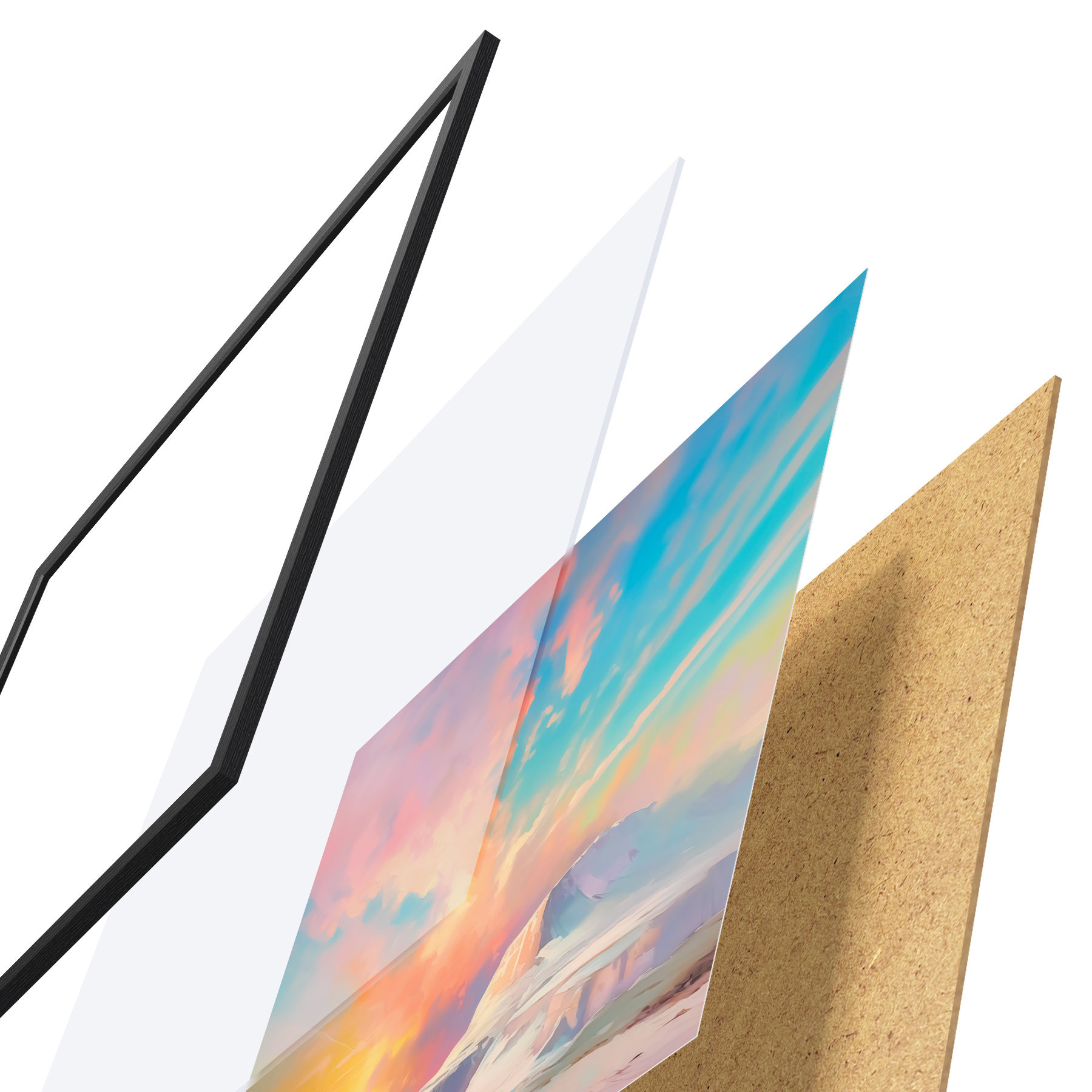 Il poster è composto da cornice, plexiglass, immagine stampata e supporto in truciolato. Il poster può essere immediatamente appeso alla parete grazie ai supporti sul retro.