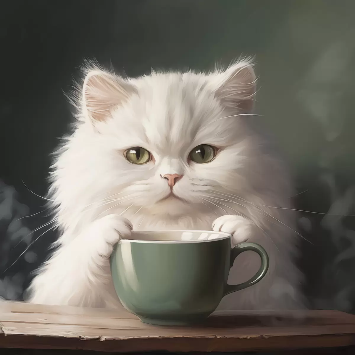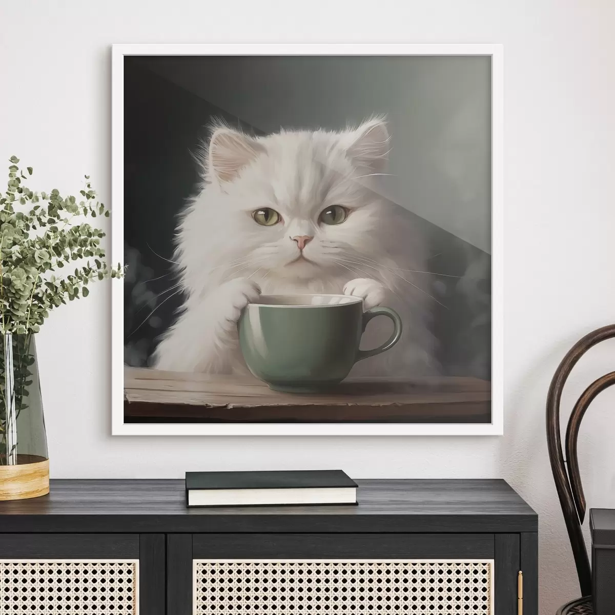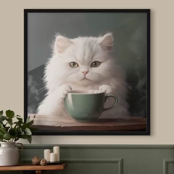 Poster Gatto bianco con coppa verde f44032