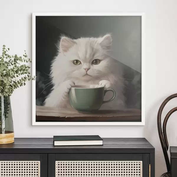 Poster Gatto bianco con coppa verde Nr f44032