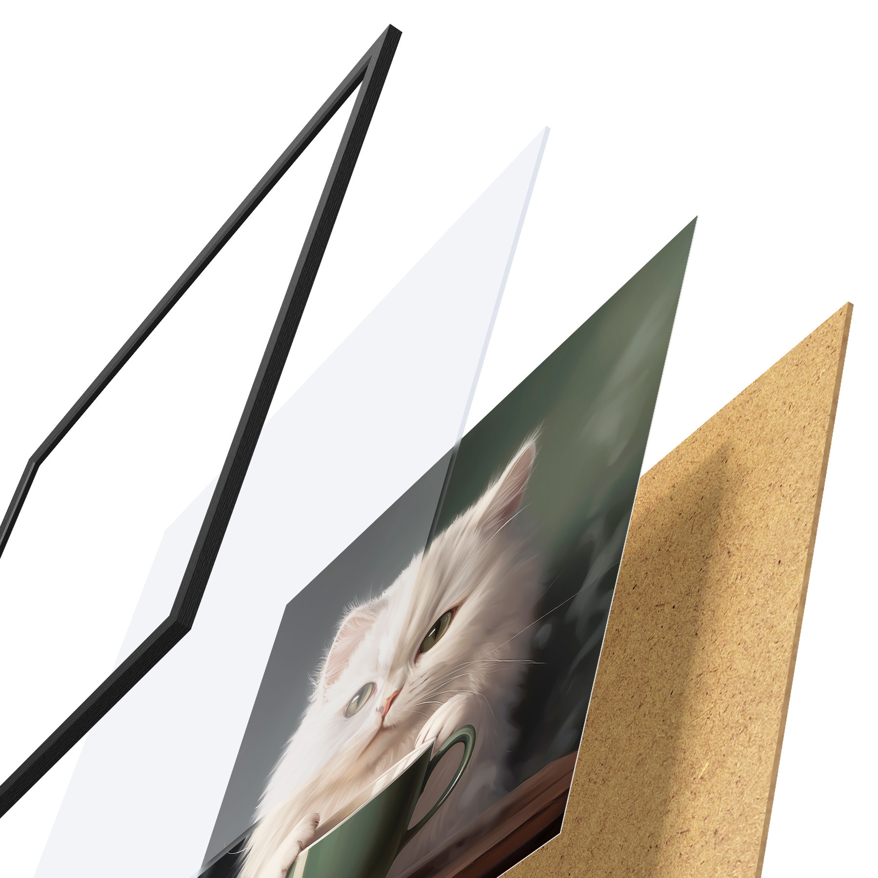 Il poster è composto da cornice, plexiglass, immagine stampata e supporto in truciolato. Il poster può essere immediatamente appeso alla parete grazie ai supporti sul retro.