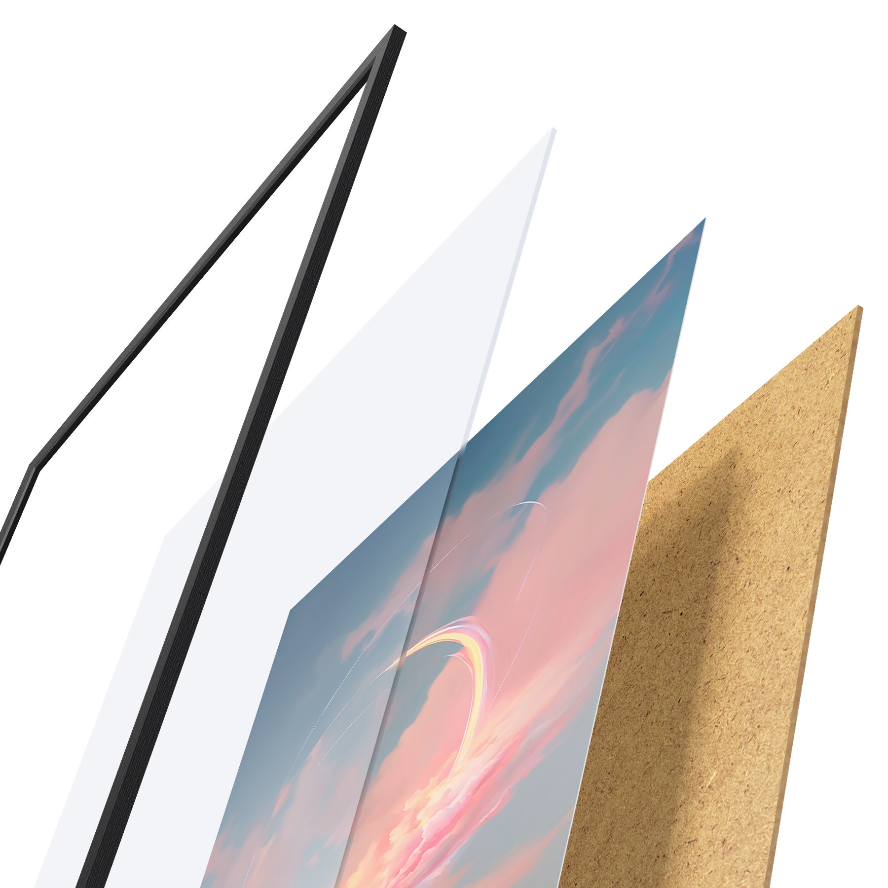 Il poster è composto da cornice, plexiglass, immagine stampata e supporto in truciolato. Il poster può essere immediatamente appeso alla parete grazie ai supporti sul retro.