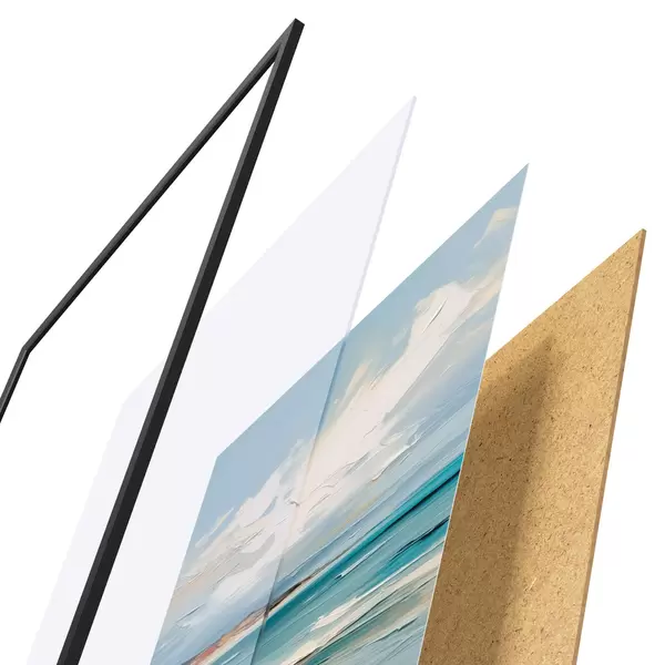Il poster è composto da cornice, plexiglass, immagine stampata e supporto in truciolato. Il poster può essere immediatamente appeso alla parete grazie ai supporti sul retro.