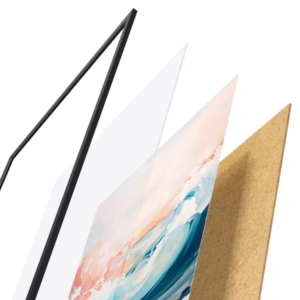 Il poster è composto da cornice, plexiglass, immagine stampata e supporto in truciolato. Il poster può essere immediatamente appeso alla parete grazie ai supporti sul retro.