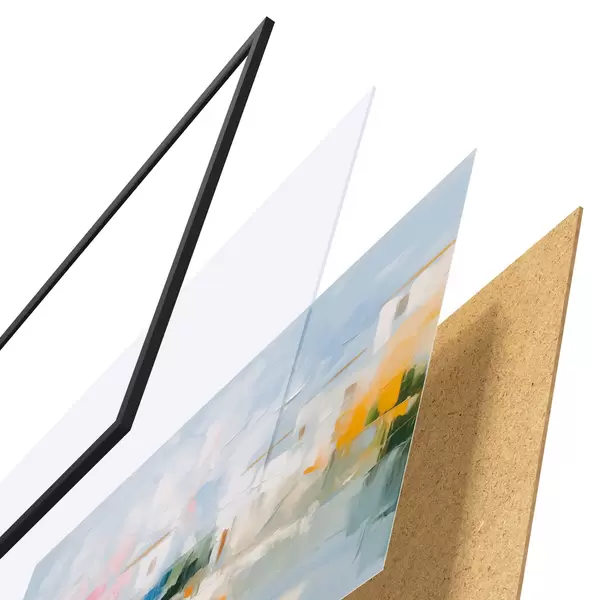 Il poster è composto da cornice, plexiglass, immagine stampata e supporto in truciolato. Il poster può essere immediatamente appeso alla parete grazie ai supporti sul retro.