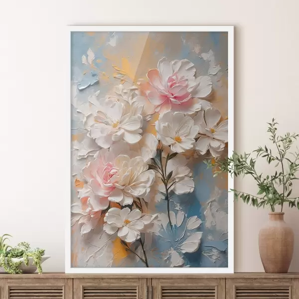 Poster Fiori bianchi e rosa su sfondo astratto Nr f44066