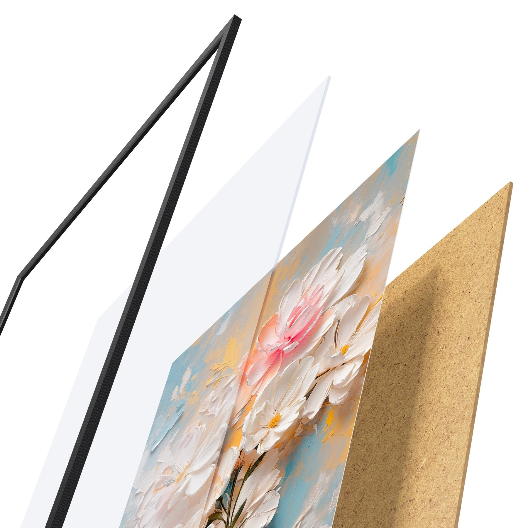 Il poster è composto da cornice, plexiglass, immagine stampata e supporto in truciolato. Il poster può essere immediatamente appeso alla parete grazie ai supporti sul retro.