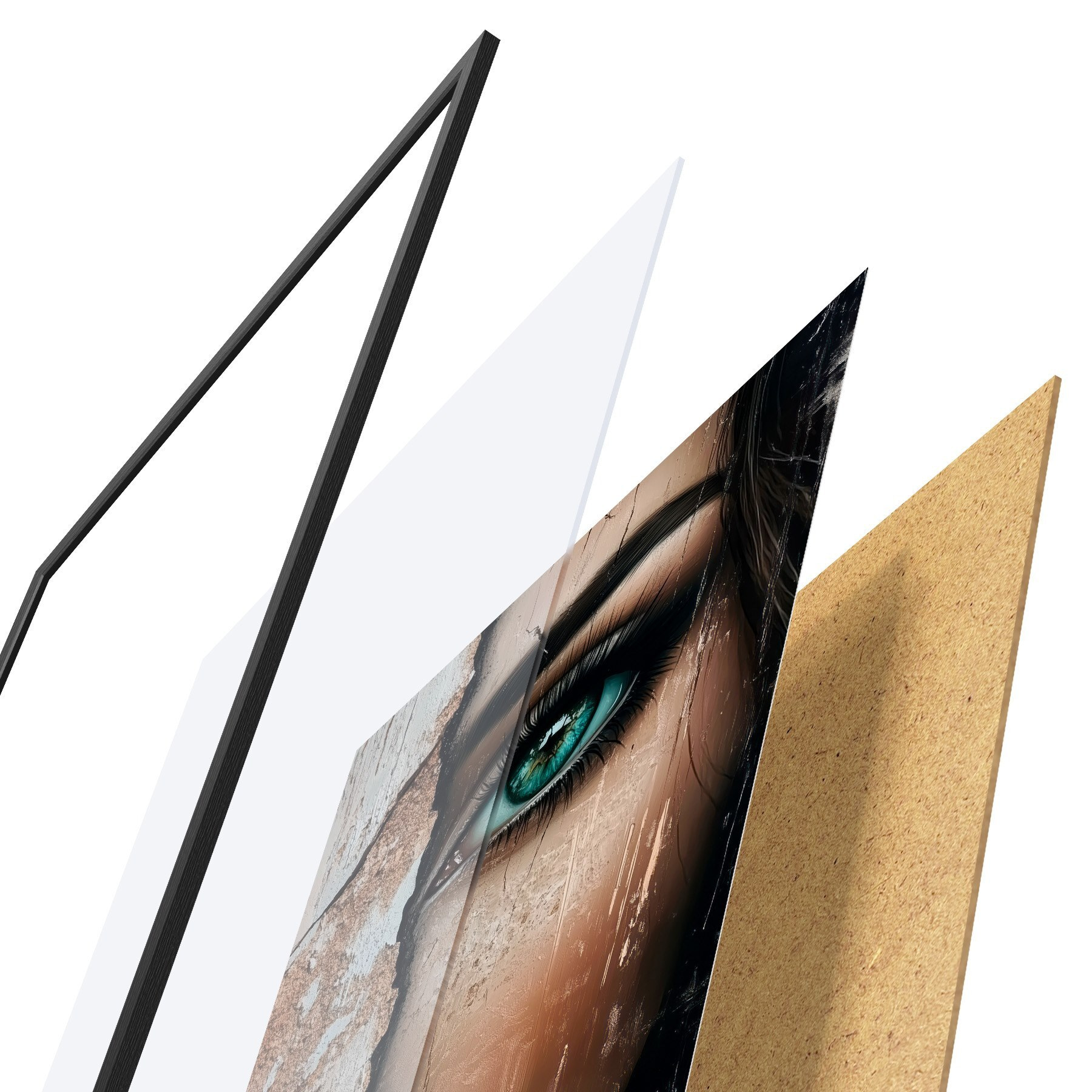 Il poster è composto da cornice, plexiglass, immagine stampata e supporto in truciolato. Il poster può essere immediatamente appeso alla parete grazie ai supporti sul retro.