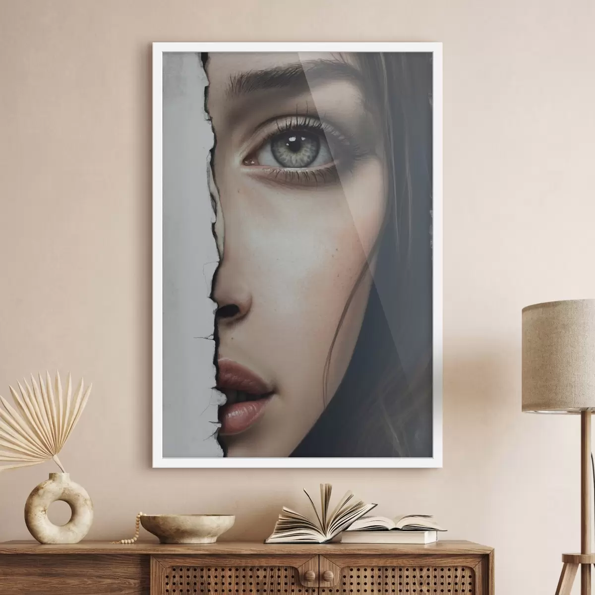 Poster Volto di ragazza dietro un muro bianco Nr f44083