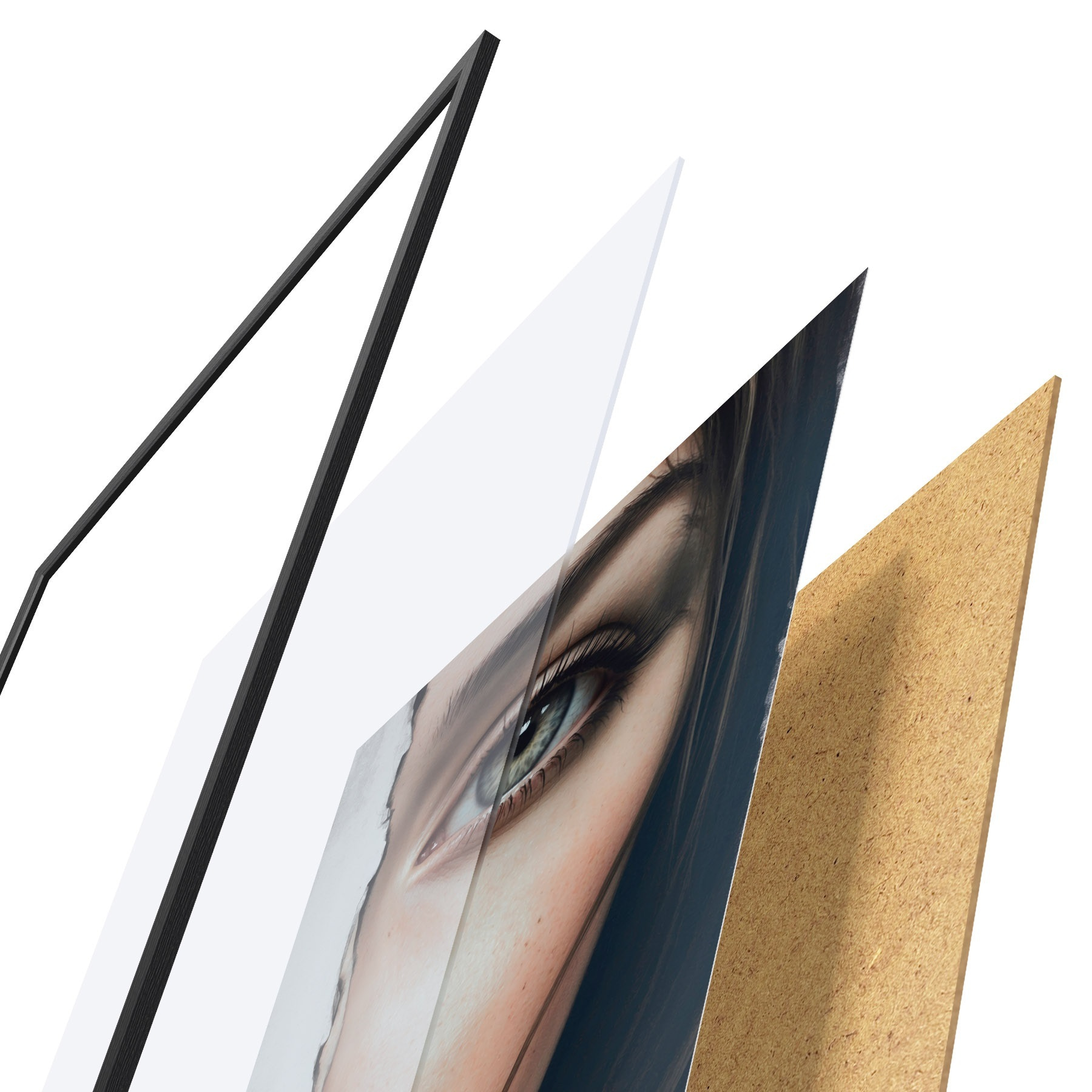 Il poster è composto da cornice, plexiglass, immagine stampata e supporto in truciolato. Il poster può essere immediatamente appeso alla parete grazie ai supporti sul retro.