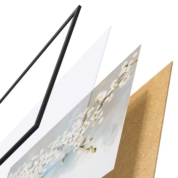 Il poster è composto da cornice, plexiglass, immagine stampata e supporto in truciolato. Il poster può essere immediatamente appeso alla parete grazie ai supporti sul retro.