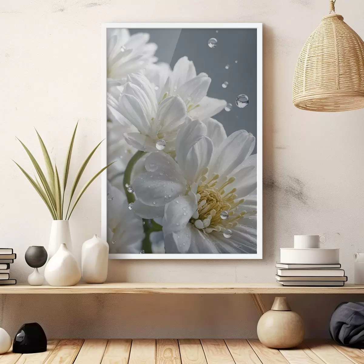 Poster Fiori bianchi con rugiada f44100