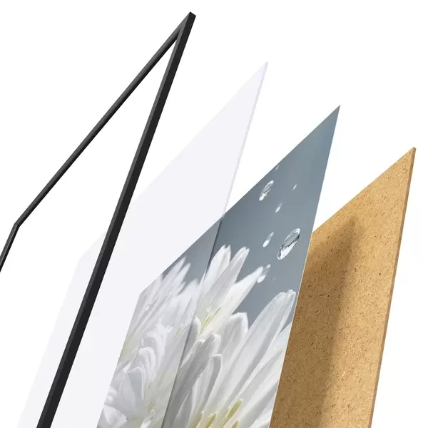 Il poster è composto da cornice, plexiglass, immagine stampata e supporto in truciolato. Il poster può essere immediatamente appeso alla parete grazie ai supporti sul retro.