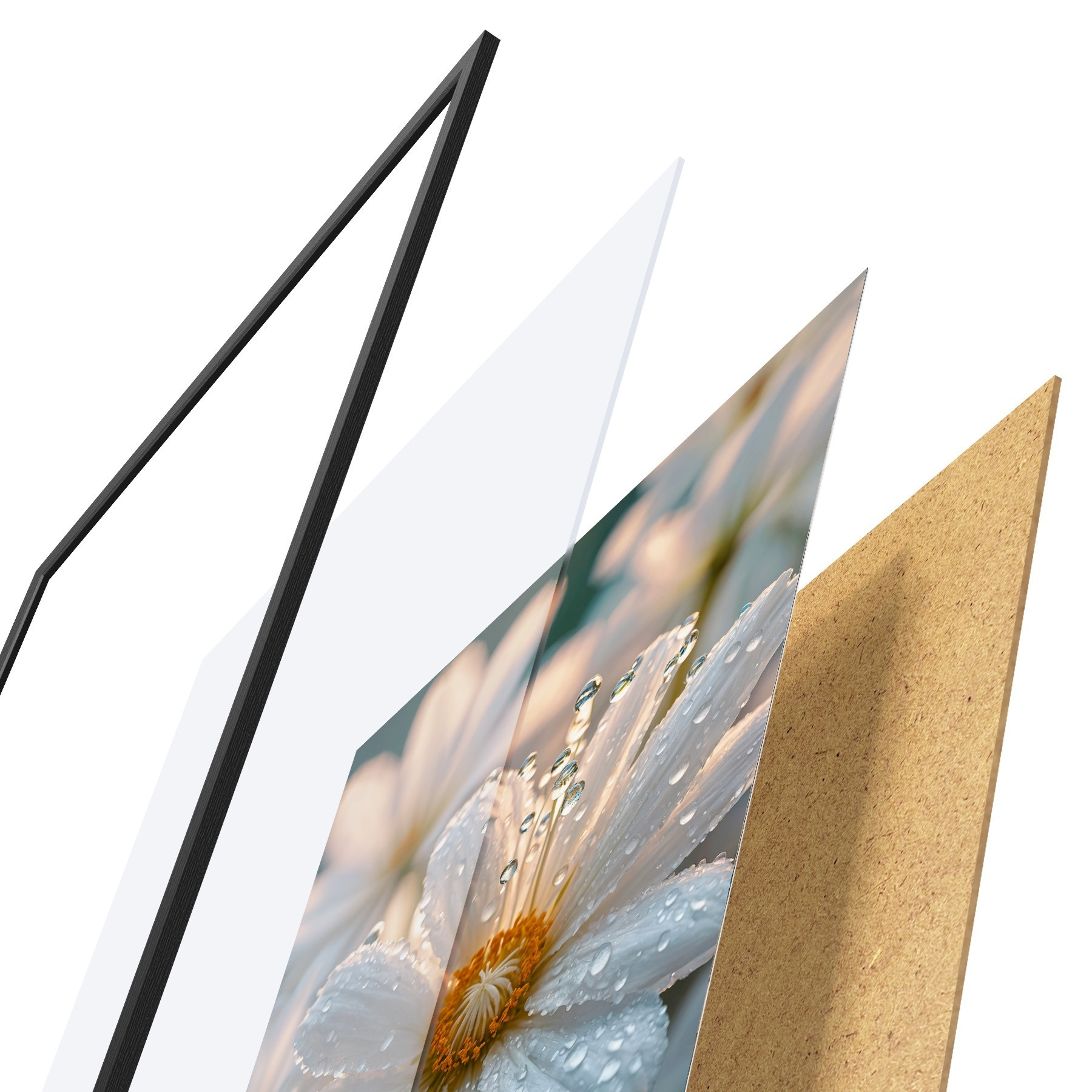 Il poster è composto da cornice, plexiglass, immagine stampata e supporto in truciolato. Il poster può essere immediatamente appeso alla parete grazie ai supporti sul retro.