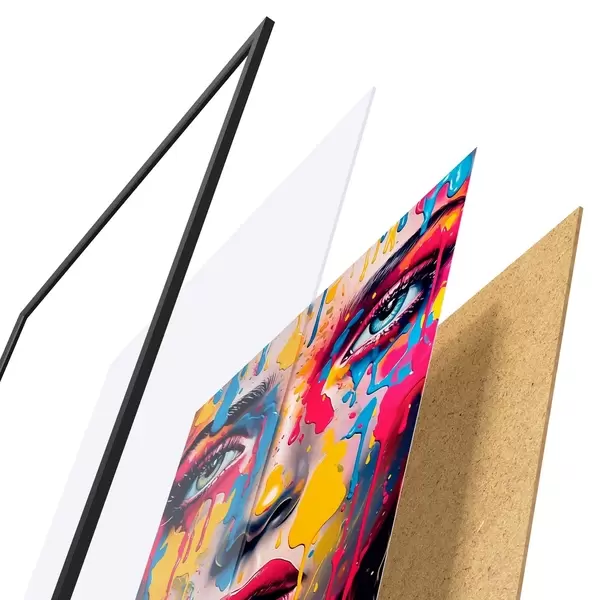 Il poster è composto da cornice, plexiglass, immagine stampata e supporto in truciolato. Il poster può essere immediatamente appeso alla parete grazie ai supporti sul retro.