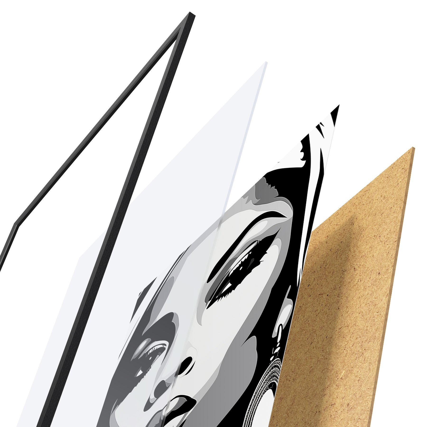 Il poster è composto da cornice, plexiglass, immagine stampata e supporto in truciolato. Il poster può essere immediatamente appeso alla parete grazie ai supporti sul retro.