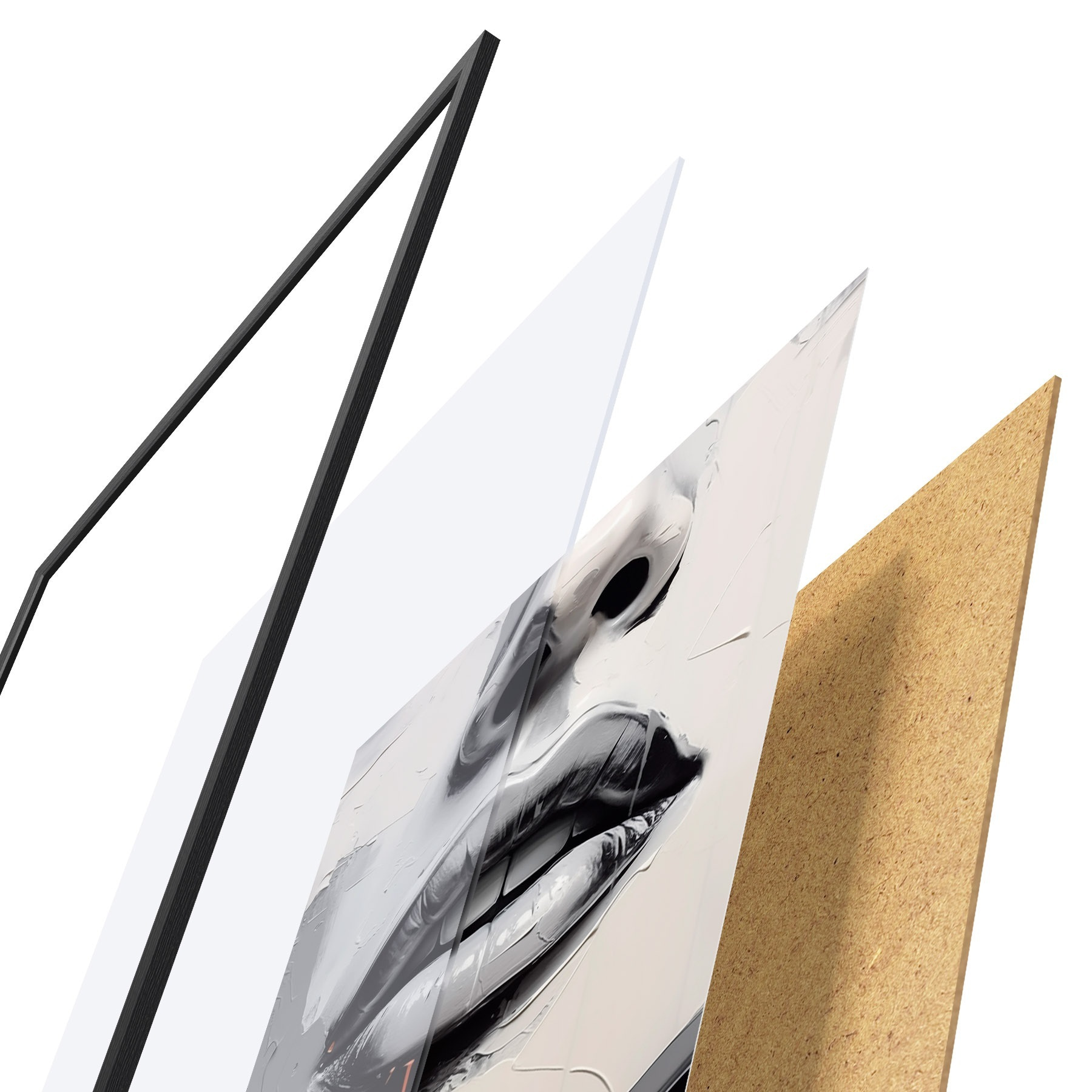 Il poster è composto da cornice, plexiglass, immagine stampata e supporto in truciolato. Il poster può essere immediatamente appeso alla parete grazie ai supporti sul retro.