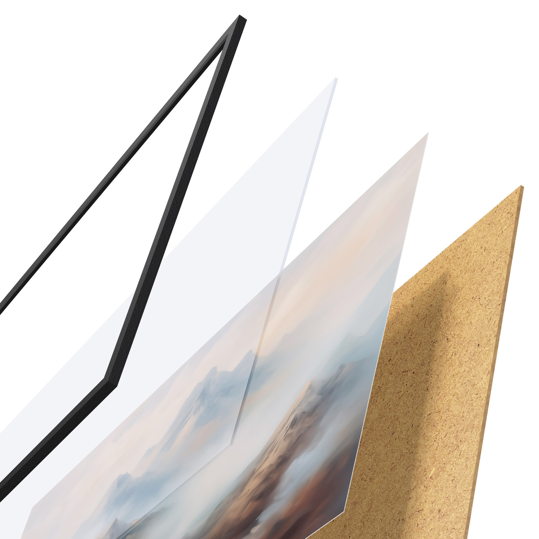 Il poster è composto da cornice, plexiglass, immagine stampata e supporto in truciolato. Il poster può essere immediatamente appeso alla parete grazie ai supporti sul retro.